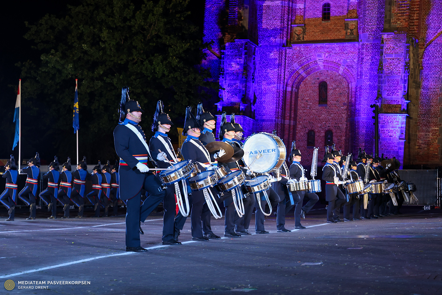 Naast het Pasveerkorps zijn tijdens de taptoe ook Jubal Drum & Bugle Corps uit Dordrecht, Showband Takostu uit Stiens, Fanfare Nationale Reserve uit Vught en Drum- en Showband Adest Musica uit Sassenheim te bewonderen. Wij zijn als vierde aan de beurt. De állerlaatste keer The Other laten zien, dat is zeker een momentje om even bij stil te staan. En wat hebben we ervan genoten!